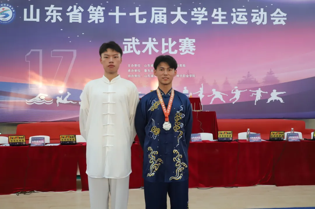 本次比赛由山东省教育厅、山东省体育局联合主办,鲁东大学协办,山东省学校体育协会和潍坊职业学院承办,比赛项目包括刀术、棍术、长拳、南拳、太极拳、太极剑等,来自全省59所高校、450多名运动员和教练员参赛。刘献尊、苏晓鹏同学在赵为民老师的精心指导下,克服多重困难,以顽强的精神在比赛中取得了个人优秀成绩。
